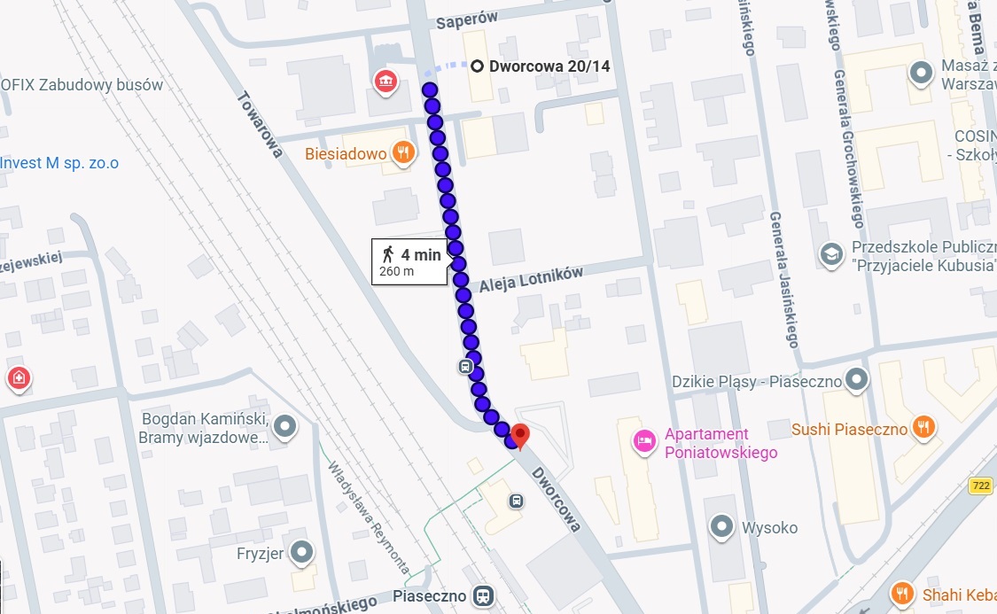 Podane czasy przejazdu autobusem lub samochodem uzależnione są od natężenia ruchu ulicznego.